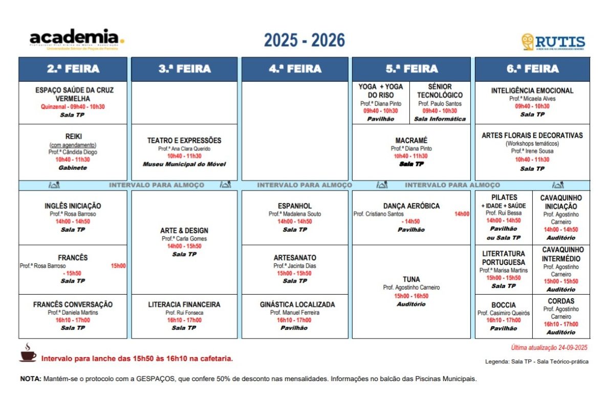 A Universidade Sénior já tem horário! A Universidade Sénior de Paços de Ferreira já tem o novo horário o ano letivo 2025-2026 Venha fazer parte desta família!