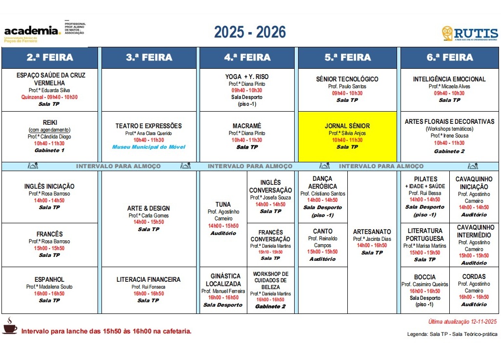 A Universidade Sénior já tem horário! A Universidade Sénior de Paços de Ferreira já tem o novo horário o ano letivo 2025-2026 Venha fazer parte desta família!